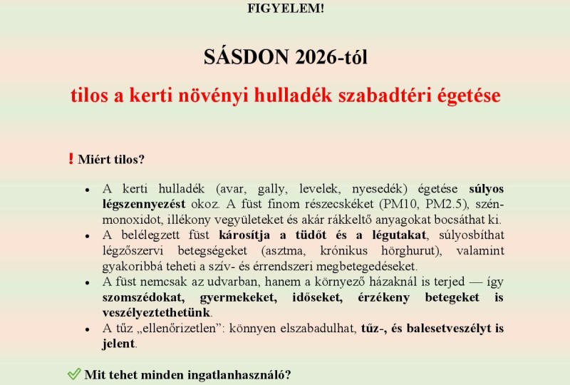 Sásdon tilos a kerti növényi hulladék szabadtéri égetése